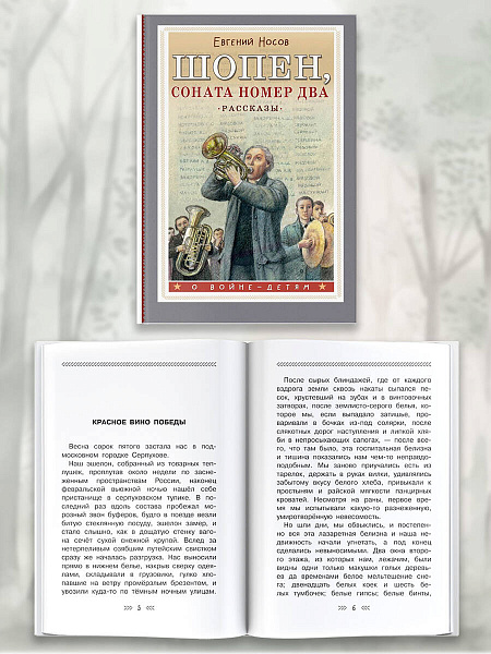 Евгений Носов, как никто другой, ощущал бремя прошедшей войны. Ведь он дошёл до Кёнигсберга, получил ранение и встретил День Победы в госпитале. Об этом он написал пронзительные рассказы. «Красное вино Победы» и «Шопен, соната номер два» вошли в нашу книгу.
