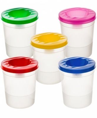 Стакан-непроливайка предназначен для промывания кисточек в процессе рисования. Плотно прилегающая крышка препятствует выливанию воды на рабочую поверхность. Специальная линия (метка безопасного уровня воды) указывает на оптимальный уровень наполнения стакана водой. Повышенная вместимость: полный объём – 500мл, до уровня - 150мл. На крышке имеются продольные желобки для кисточек. Яркие крышки - ассорти из 5 цветов: красный, жёлтый, зелёный, синий, розовый. Изготовлен из сертифицированного полипропилена.