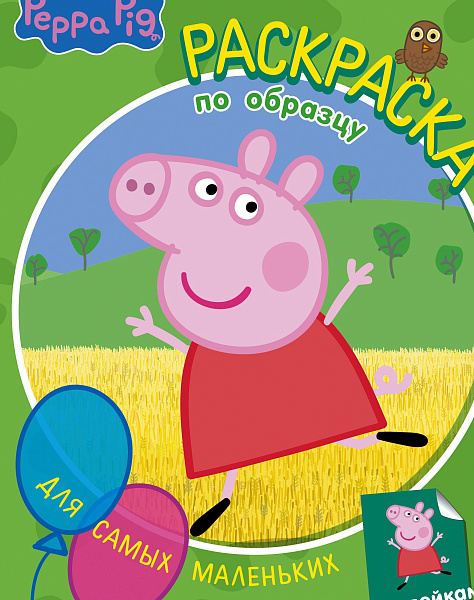 Свинка Пеппа Раскраска по образцу для самых маленьких (зеленая)