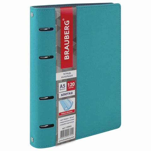 Тетрадь состоит из 120 листов офсетной бумаги плотностью 70 г/м2 с линовкой в клетку и полями. Обложка тетради с однотонным дизайном стилизована под фактурную кожу и прошита по периметру. Формат А5 является стандартным и обеспечивает комфортное ношение в рюкзаке/ранце или папке. Кольцевой механизм позволяет легко сменить внутренний блок на новый, не покупая при этом новую тетрадь — его нужно просто разжать. Полезный диаметр колец — 25 мм.