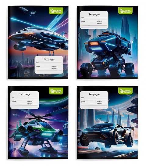 Тетради 12 листов серии Schoolformat® ТЕХНИКА БУДУЩЕГО выполнены из высококачественного импортного картона, плотностью 190 г/м2, и имеют внутренний блок исключительного качества плотностью 60 г/м2. Все тетради соответствуют требованиям по техническому регламенту. Плотная обложка защищает листы и записи от повреждений. Линовка - клетка. Интенсивность линий оптимальная — текст, написанный от руки, хорошо виден. На мягкой бумаге удобно писать. Чернила сохнут быстро, не смазываются, сохраняют насыщенный цвет.