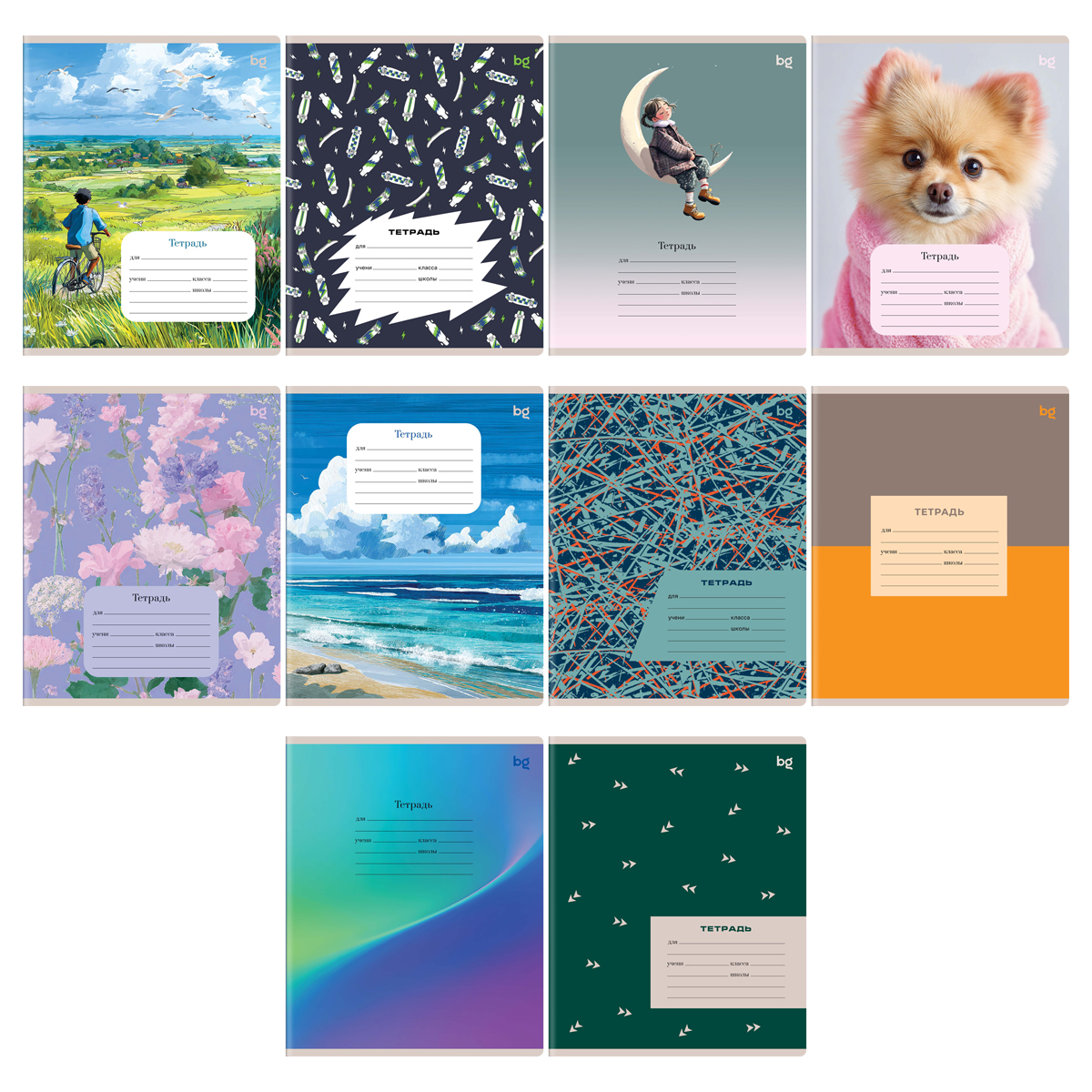 Тетради «Mix-10» от bg — отличный выбор для учебы. Изделие компактного формата А5 (165*205 мм) легко поместится в папку или рюкзак. Внутренний блок состоит из 24 листов на скрепке. Для письма на офсетной бумаге плотностью 60 г/м² можно использовать любые пишущие принадлежности: шариковые, гелевые, капиллярные ручки или карандаши. Линовка в линию подойдет для уроков русского языка и чтения. Обложка изготовлена из мелованного картона. Она надежно защищает тетрадь от повреждений.
