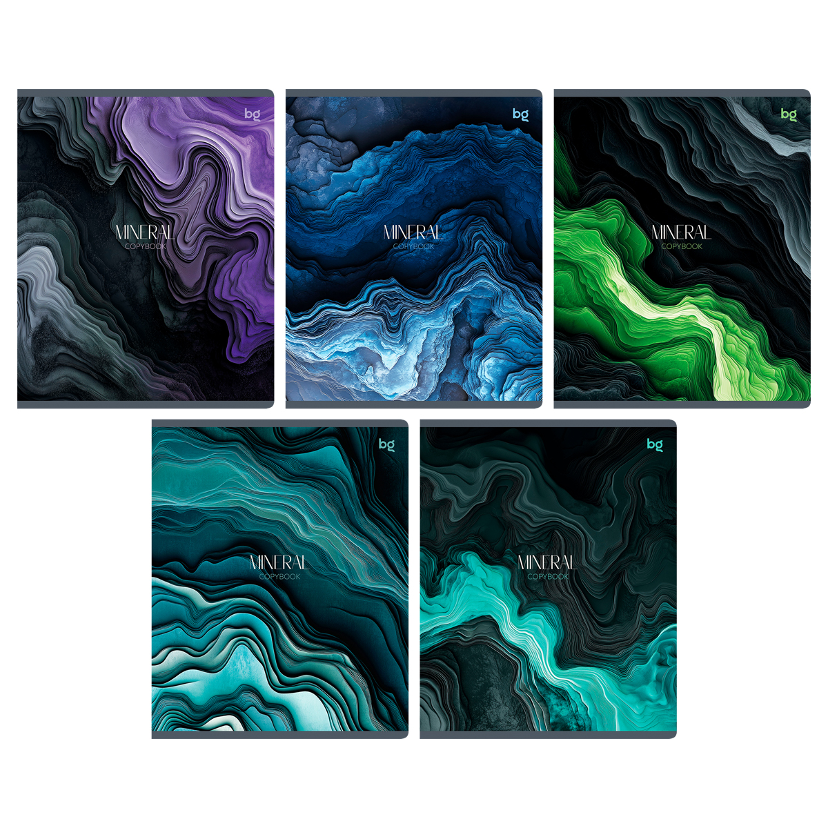 Общая тетрадь BG "Mineral" в клетку с полями подходит для выполнения домашних работ, конспектирования большого объёма информации. Формат изделия — А5 (165*205 мм). Внутренний блок на скрепке состоит из 48 листов офсетной бумаги плотностью 60 г/м2. Обложка выполнена из мелованного картона с использованием отделки - глянцевая ламинация