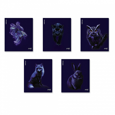 Тетрадь общая ученическая формата А5+ (170х203 мм). Обложка из высококачественного мелованного картона плотностью 190 г/м2. Отделка - soft-touch ламинация, выборочный УФ-лак. В блоке 48 листов в клетку с полями. Бумага офсетная плотностью 60 г/м2. Цвет линовки - синий. Скругленные уголки обложки и блока. Тип скрепления - скоба.