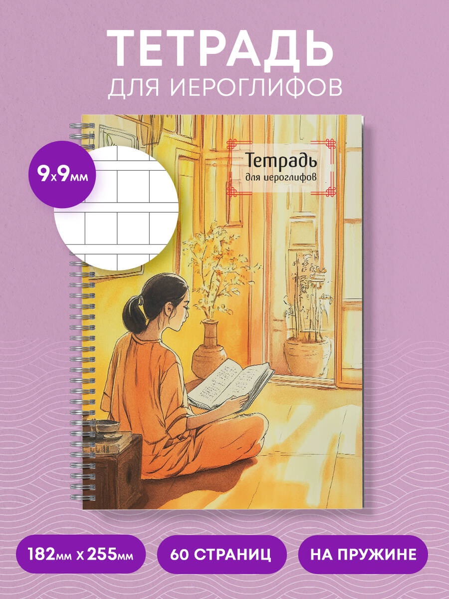 Аннотация к книге «Тетрадь для иероглифов на пружине Девушка и книга (83)»