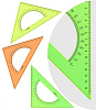 Треугольник 45 градусов 16см, с транспортиром 180 градусов. Чёткая отливная миллиметровая шкала. Гладкая глянцевая поверхность. Цвет: 3 ярких цвета ассорти (прозрачные).