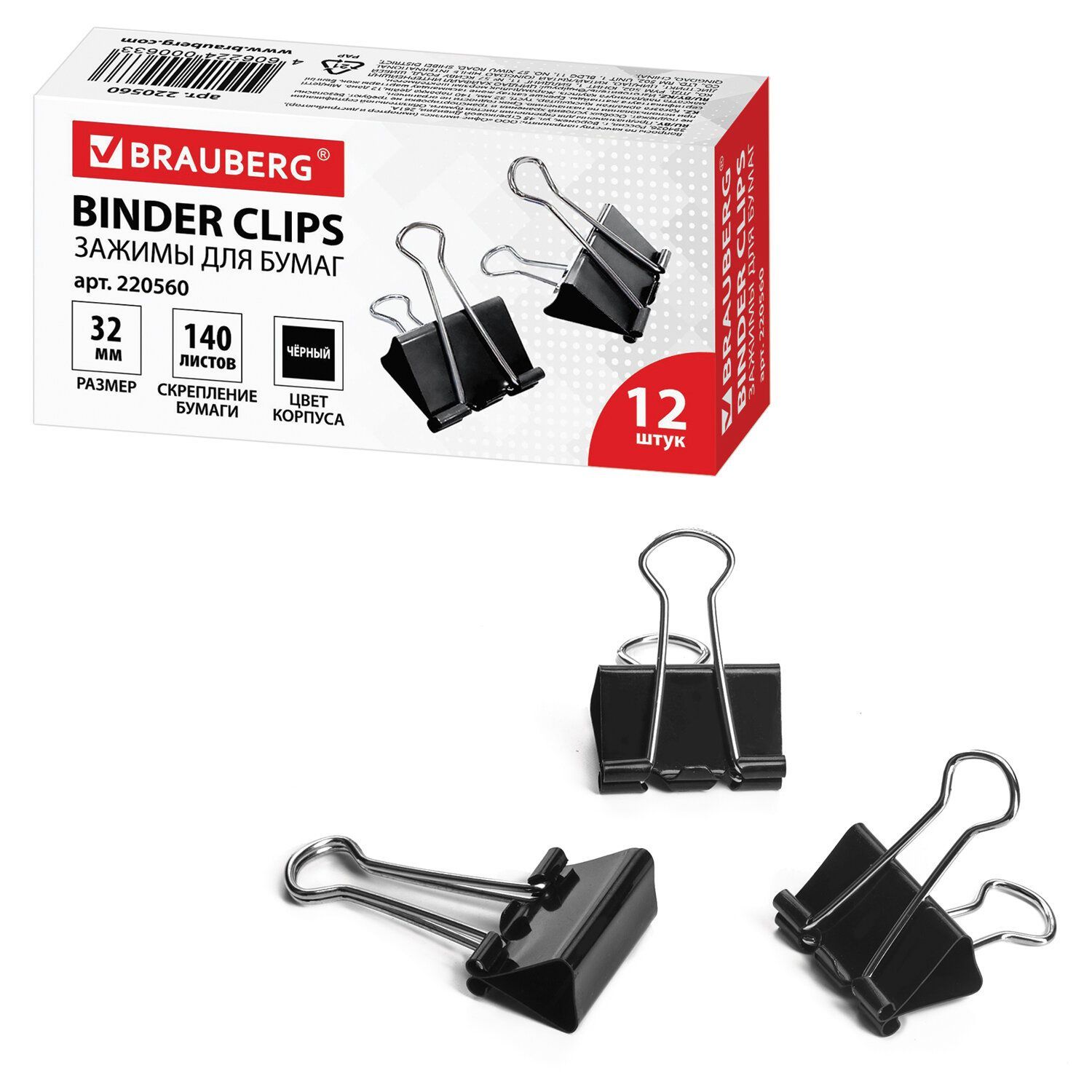 Зажимы для бумаг BRAUBERG предназначены для скрепления документов без использования степлера. Изготовлены из стали с черным покрытием. Позволяют скреплять до 140 листов. Не деформируют бумагу. Ширина зажима - 32