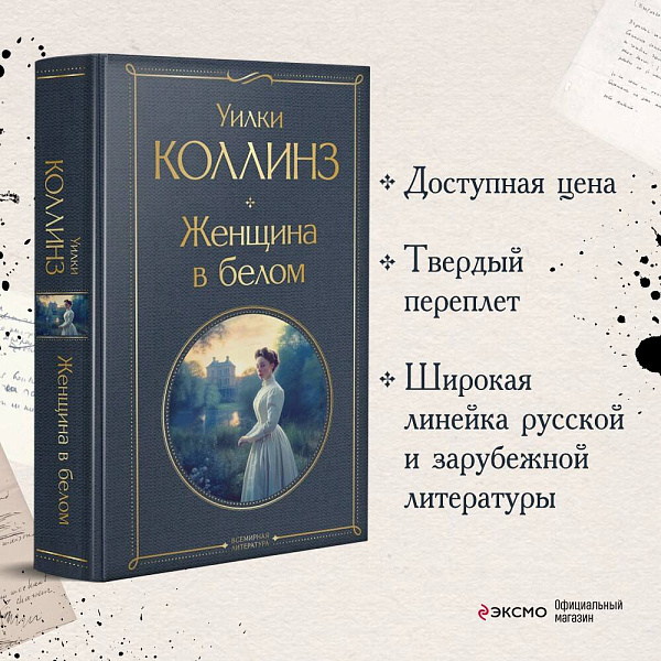 Другой великий роман Коллинза — «Лунный камень», который часто называют лучшим детективом из когда-либо написанных, но именно история «Женщины в белом» настолько захватила воображение Уилки Коллинза, что на своем надгробии он попросил написать: «Автор "Женщины в белом" и других сочинений».