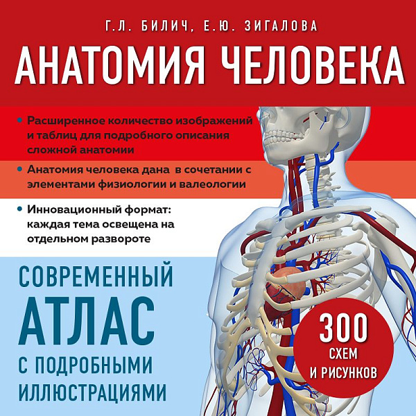Новое издание подготовлено с учетом всех современных представлений о структурно-функциональных особенностях органов и систем человеческого тела. Имея классическую структуру, атлас включает около 300 подробных красочных иллюстраций, а также многочисленные таблицы. Новый графический дизайн с цветовым разделением глав и параграфов позволяет быстро найти необходимый раздел или главу. А также: - Дополнительные изображения и таблицы подробно описывают сложную анатомию брюшной полости, паховой области, соединения костей, мышцы головы и шеи. - Анатомия человека дается с элементами физиологии и актуальными сегодня основами валеологии: работоспособность, отдых, типы нервной деятельности. - Инновационный формат: каждая тема освещена на отдельном развороте с единообразным расположением рисунков справа, а текста — слева.