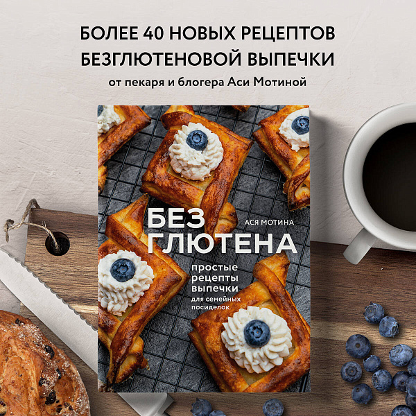 Если вы сталкиваетесь с ограничениями в глютене и других продуктах и периодически не знаете, что же съесть на десерт или перекус, то в новой книге безглютенового пекаря Аси Мотиной вы найдете свой любимый, а может, даже и несколько любимых рецептов. В книге вас ждут рецепты различного безглютенового теста: дрожжевого и бездрожжевого, песочного, слоеного, пельменного и теста фило. Автор расскажет и покажет вам, какими вкусными могут быть пироги, пирожки и сдоба на таком тесте. Как бесподобны корзиночки с кремом и пирожки с капустой, даниши с кокосовым кремом и пирог с кетой и брокколи. Для вашего удобства в книге есть словарик ингредиентов, инвентаря и пекарских терминов, которые встретятся вам в рецептах. Надеемся, что благодаря рецептам, собранным в этой книге, ваша жизнь станет вкуснее, сытнее, разнообразнее, и, собираясь с друзьями или за семейным столом, вы не будете чувствовать себя обделенными и не вспомните о том, что вам чего-то нельзя.