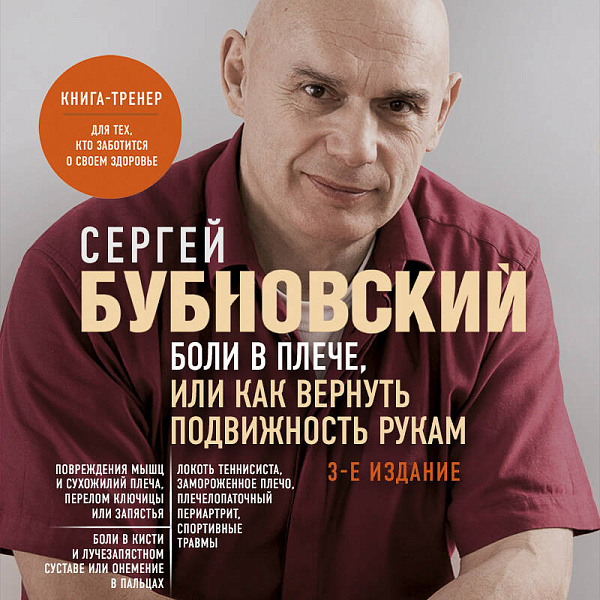 В своей новой книге доктор Бубновский дает простые, но очень эффективные рекомендации по восстановлению здоровья при заболеваниях плеча, локтя и кистей рук без лекарств и подробно описывает упражнения, которые помогут избавиться от болей.