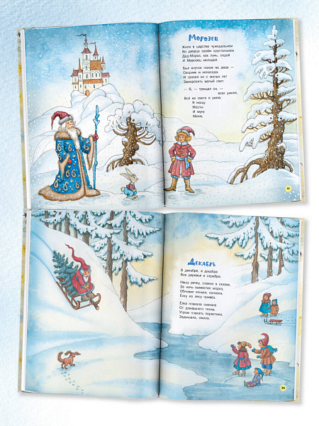 Какого цвета зима? Выгляните в окошко и посмотрите на белый пушистый снежок, на игру снежинок. А что это там ещё такое? Это санки, на которых едет весёлая детвора. А кто это там промелькнул в красной шубе? Неужели Дед Мороз? С ним какой-то сорванец бежит вприпрыжку. Кто же это? Не знаете? Открывайте скорее эту волшебную книжку, чтобы познакомиться со всеми героями самой зимней книги С. Маршака. Счастливых праздников!