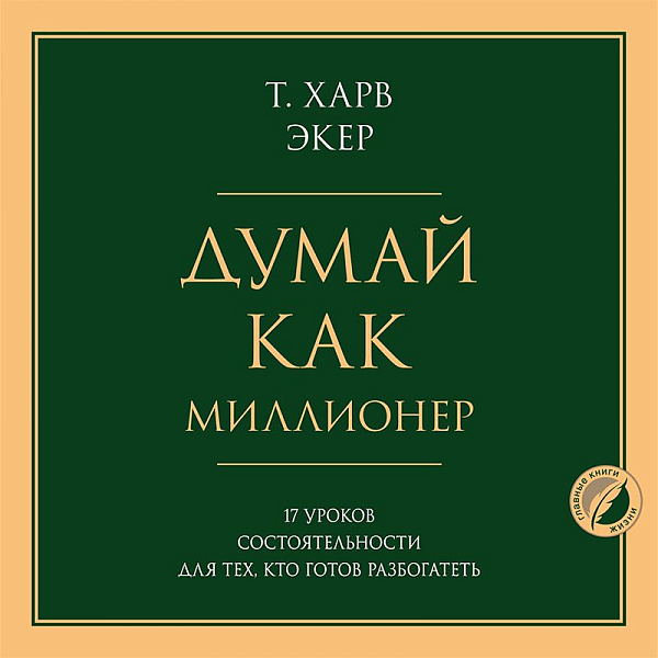 «Главные книги жизни» — это лучшие книги по психологии и саморазвитию, которые признал весь мир и успели оценить десятки и сотни тысяч читателей в России. Вдохновляйтесь, меняйтесь, действуйте — вы на верном пути! Ведь книги, как и люди, приходят в нашу жизнь не случайно! ПОЧЕМУ МЫ РЕШИЛИ ИЗДАТЬ ЭТУ КНИГУ Есть много замечательных американских систем «как разбогатеть», которые базируются на принципе «взял ипотеку — купил недвижимость — сдал в аренду — плата за аренду превышает ваши ежемесячные выплаты по кредиту — вы не только выплачиваете ипотеку чужими руками, но и получаете прибыль». К сожалению, российские ипотечные условия сильно отличаются от американских, и разбогатеть, набрав в кредиты объекты недвижимости, смогут лишь самые смелые и ушлые инвесторы. Книга «Думай как миллионер» не предлагает никаких авантюрных схем с чужими деньгами. Харв Экер, ваш финансовый психолог и консультант, работает с тем, что вы имеете на данный момент: вашими укоренившимися убеждениями относительно денег и вашим текущим доходом, которым вы научитесь распоряжаться так, чтобы жить в достатке сегодня и стать финансово свободным и независимым человеком в скором будущем. Результаты ошеломят вас. «КТО ТАКОЙ, ЧЕРТ ВОЗЬМИ, ЭТОТ ХАРВ ЭКЕР И ПОЧЕМУ Я ДОЛЖЕН ЧИТАТЬ ЕГО КНИГУ?» (отрывок из книги) Неважно, где я выступаю — на радио или ТВ; узнают меня обычно по фразе: «Дайте мне пять минут, и я предскажу ваше финансовое будущее!» Когда-то я был неудачником и не раз начинал с нуля, а сегодня я весьма состоятельный человек и президент Peak Potentials Training, одной из самых быстро растущих и успешных тренинговых компаний в Северной Америке. Люди со всего мира приезжают на мой интенсивный курс «Думай как миллионер», и уже более 1 000 000 учеников увеличили свой уровень дохода благодаря новому мышлению. Возможно, я не объективен, но сейчас в ваших руках, пожалуй, самая выдающаяся книга о деньгах, которую вам приходилось читать. И я отдаю себе отчет в том, что это довольно смелое заявление. На самом деле, речь в книге идет о том, чего обычно не хватает людям, чтобы воплотить в реальность свои мечты об успехе. А мечты и реальность, как вы уже, наверное, знаете, — это совершенно разные вещи. Вы, конечно, читали другие книги, покупали аудиозаписи, ходили на специальные курсы и узнали много методик обогащения, например в сфере недвижимости, рынка ценных бумаг или ведения бизнеса. К чему это привело? Да ни к чему! Во всяком случае большинство из вас! Вы получили временный заряд энергии — и вернулись на прежние позиции. Выход, наконец, найден. Он прост, закономерен и очевиден. И сводится к одной простой идее: если заложенная в вашем подсознании «финансовая программа» не «настроена» на успех, что бы вы ни учили, какими бы знаниями ни обладали и что бы ни делали — вы обречены на неудачу. Изучайте эту книгу так, словно от этого зависит ваша судьба. Из нее вы узнаете, почему одним суждено быть богатыми, а другим — бороться за существование. Вы поймете истинные причины успеха, среднего достатка и финансовых неудач и начнете менять свое финансовое будущее к лучшему. Узнаете, как детские впечатления влияют на нашу финансовую программу, как они приводят к пораженческим настроениям и привычкам. Вы познакомитесь с «волшебными» декларациями, и благодаря им на смену пессимистическому образу мыслей п