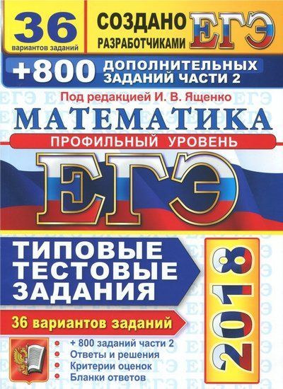 Глава 1 книги содержит 36 вариантов комплектов типовых тестовых заданий по математике, составленных с учетом всех особенностей и требований Единого государственного экзамена по математике профильного уровня 2018 года. В главе II книги отдельно представлены качественная информация о заданиях части 2 и обширная подборка задач части 2, скомпонованных по всем темам школьной математики. Назначение пособия - предоставить читателям информацию о структуре и содержании контрольных измерительных материалов по математике профильного уровня, степени трудности заданий. В сборнике даны ответы на все варианты тестов, приводятся решения всех заданий части 2 двух вариантов, а также ответы на все задания главы II, части 2 книги. Кроме того, приведены образцы бланков, используемых на ЕГЭ для записи ответов и решений. Пособие может быть использовано учителями для подготовки учащихся к экзамену по математике в форме ЕГЭ, а также старшеклассниками и выпускниками - для самоподготовки и самоконтроля.