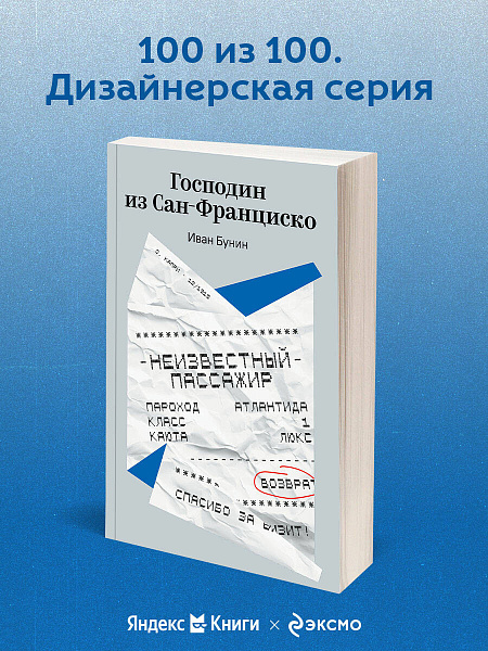 "100 из 100. Дизайнерская серия" - это коллаборация ЭКСМО и Яндекс Книг, родившаяся из проекта «100 обложек от 100 дизайнеров Яндекса». Актуальность классических текстов подчеркивается разнообразием художественных приемов в оформлении.