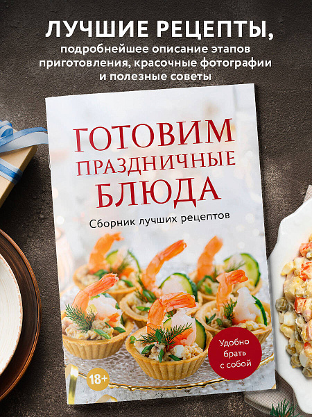 - Более 25 оригинальных рецептов для праздника: от классических салатов и горячих блюд до эффектных кулинарных шедевров.