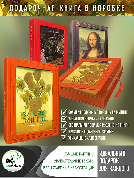 Перед вами уникальное подарочное издание "Импрессионисты: любимые картины" знаменитого советского и российского искусствоведа, историка культуры и преподавателя Паолы Волковой. Оно оформлено в виде красочно иллюстрированного альбома в шикарном футляре, содержащего множество увлекательных фактов о великих художниках-импрессионистах, детальные фрагменты их картин и глубочайшие размышления автора об искусстве и творчестве в целом.