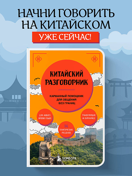 Начни говорить на китайском уже сейчас! Китайский разговорник поможет изъясниться за границей в различных ситуациях: будь то заказ обеда в ресторане либо поход в аптеку. Разговорник включает в себя множество тем и выражений, снабжённых транскрипцией на кириллице. Небольшой формат, гибкая обложка и закруглённые уголки, — всё делает разговорник идеальным карманным помощником!