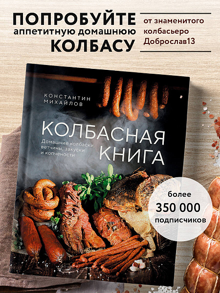 Популярный блогер Константин Михайлов, более известный как Доброслав13, давно наладил домашнее производство колбас и деликатесов и поделится своими рецептами и секретами. Вас ждут более 35 рецептов колбас, ветчин, копченых и сушеных мясных деликатесов.