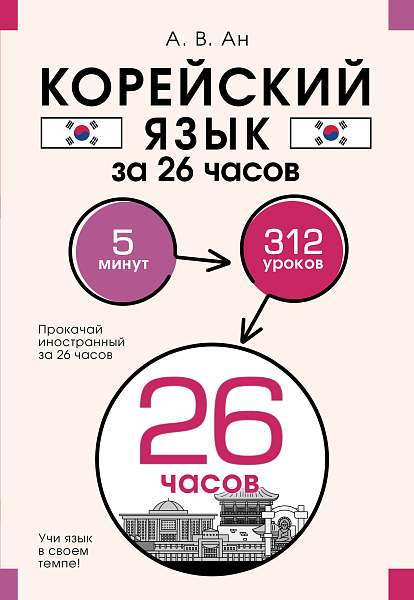 "Корейский язык за 26 часов" — это практический самоучитель, который поможет вам быстро и без усилий овладеть необходимыми грамматическими конструкциями и заговорить на корейском. В каждом уроке дается одно базовое выражение и несколько новых слов. После прохождения 312 уроков по 5 минут вы сможете легко поддержать беседу на простые темы.