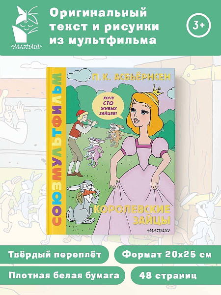 Золотая коллекция «Союзмультфильма» Впервые — легендарные мультфильмы в книгах! Это такие хитрые книги для всех тех, кто страстно любит смотреть мультики. Однако не всем детям разрешают сидеть перед телевизором с утра до вечера. Зато ни один родитель не запретит своему ребёнку читать. Тем более такие яркие, красивые, умные и добрые книги, написанные лучшими детскими писателями и нарисованные великолепными художниками-мультипликаторами. Читайте книгу П. К. Асбьёрнсена «Королевские зайцы» со знаменитыми иллюстрациями из мультфильма.