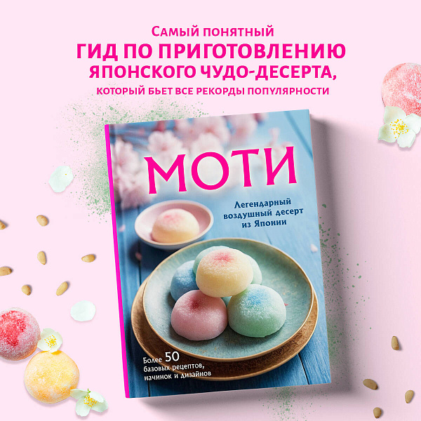 Приготовить трендовый японский десерт моти? Проще простого с книгой «Моти. Легендарный воздушный десерт из Японии. Более 50 базовых рецептов, начинок и дизайнов»!