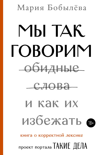 Инвалид, бомж, колясочник, трансгендер – что не так с этими словами? Почему нельзя заболеть онкологией, лишиться девственности или сделать операцию по смене пола? Эти и многие другие слова и выражения или некорректны, или просто неверны. С помощью лингвистов, активистов, психологов и профильных специалистов автор Мария Бобылёва объясняет, что такое толерантная лексика, откуда она взялась и почему именно сейчас вокруг нее столько споров. Книга стала продолжением онлайн-проекта "Мы так не говорим" портала "Такие дела".