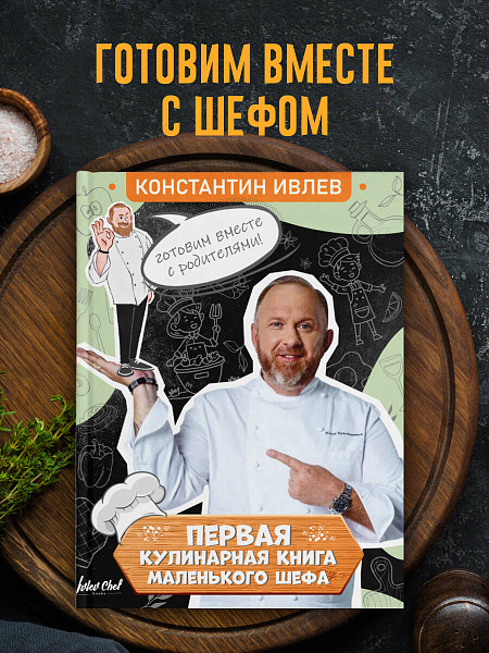 Ребенок обожает готовить? Ставит смелые кулинарные эксперименты? Превратите мечту о профессиональной кулинарии в реальность с книгой опытного Шефа Константина Ивлева «Первая кулинарная книга маленького шефа»! В книге Константин Ивлев делится авторскими рецептами, которые легко повторить вместе с детьми. Пошаговые инструкции, сочные иллюстрации, раскраски и увлекательные задания, техника безопасности и теплая поддержка от автора превратят приготовление самого привычного блюда в творчество. Вы узнаете, что рецепты ограничены только нашей фантазией: «Запеченная груша в тесте с козинаками», «Павлова с клубничным соусом и ягодами», «Мега-пупер бургер с мясной котлетой и сыром чеддер», «Дуэт томатного и огуречного гаспачо», «Суп-капучино из шампиньонов», «Маринованный лосось с фасолевой улыбкой»... от одних названий слюнки текут! Скорее завязывайте фартук, бегите на кухню и наслаждайтесь кулинарным творчеством всей семьей!