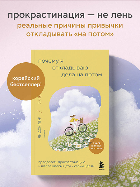 Авторы книги, профессор Ли Донгви, посвятивший более 20 лет консультативной психологии, вместе со своей исследовательской группой объяснили, почему мы откладываем дела на потом и как мягко вернуть себе желание действовать. Они поделились результатами многолетних трудов, историями из жизни и простыми инструментами, которые помогают перестать ругать себя и начать действовать — спокойно, осознанно и в своем темпе.