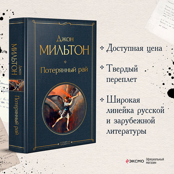 «Потерянный рай» — это эпическая поэма Джона Мильтона, написанная в XVII столетии, которая стала яркой и широко известной интерпретацией библейского сюжета о грехопадении человека. Поэма Мильтона поражает своей масштабностью и философской глубиной, внимательно изучая пределы человеческой свободы, вопросы божественного предопределения и борьбы добра со злом. В «Потерянном рае» Мильтон повествует об искушении Адама и Евы , создавая пронзительный портрет человеческой трагедии и борьбы за искупление. Книга считается одним из величайших мировых литературных произведений.