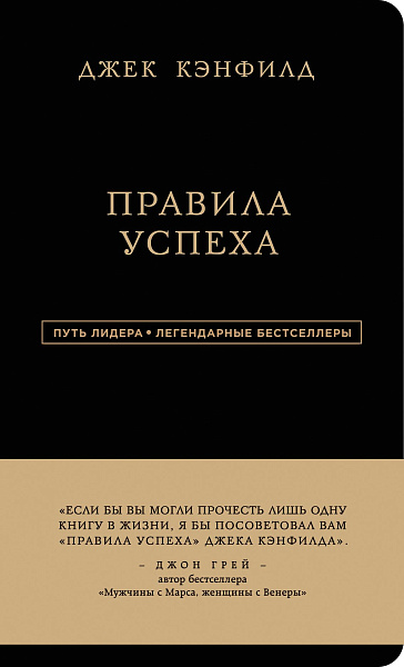 Фишки серии Книги серии «Путь лидера. Легендарные бестселлеры» роскошно оформлены: переплет из черного бумвинила, тиснение золотом, скругленные углы, стильные красные форзацы и лента-ляссе, качественная белая бумага в блоке. Прекрасный подарок и украшение книжной полки. Также читайте в серии: - Ицхак Адизес. «Лучшее. Пища для размышлений». - Наполеон Хилл. «Думай и богатей». - Джек Кэнфилд. «Правила успеха». - Роберт Чалдини. «Психология влияния». - Теодор Рузвельт. «Законы лидерства». - Уинстон Черчилль. «Никогда не сдавайтесь». - Дональд Трамп. «Думай как чемпион». Об авторе Джек Кэнфилд — эксперт по достижению успеха, автор более 60 книг, разошедшихся по всему миру тиражами 500 000 000 экземпляров, переведенных на 39 языков. Семь из написанных им бестселлеров лидировали в рейтинге «New York Times», имя Джека Кэнфилда занесено в Книгу рекордов Гиннесса. Ученик легендарного Наполеона Хилла является владельцем шикарного поместья в Калифорнии, регулярно участвует в известных телевизионных передачах — от «Ток-шоу Опры» до «Доброе утро, Америка», получая за каждое выступление не менее 25 тыс. долларов. Ежегодный доход Кэнфилда превышает несколько миллионов долларов. Для кого Для руководителей компаний и подразделений, для тех, кто интересуется вопросами лидерства, историей XX века. Фишки книги Реальные и четко сформулированные законы достижения успеха. Отзывы «Если бы вы могли прочесть лишь одну книгу в жизни, я бы посоветовал вам "Правила успеха" Джека Кэнфилда». — - Джон Грей, автор бестселлера «Мужчины с Марса, женщины с Венеры» «Есть только один человек, ответственный за качество вашей жизни. И этот человек — вы». — Джек Кэнфилд