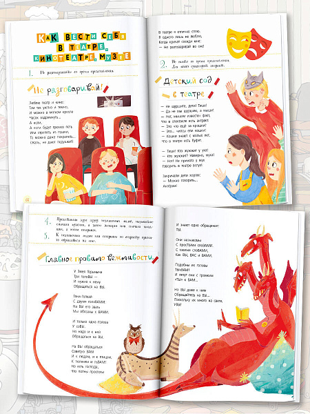 Каждый родитель хочет, чтобы его ребенок был воспитанным и вежливым. А что такое вежливость? Что можно, а что нельзя делать, чтобы окружающие считали тебя настоящей леди или настоящим джентльменом? Это не только не класть ноги на стол или не здороваться с соседями на весь вагон, изо всех сил дергая протянутую руку. Чтобы не упасть в глазах родни, надев очень яркий наряд, но не причесавшись; не промахнуться, даря другу на день рождения то, что нравится только тебе; не мешать зрителям, громким рассказом о нем по телефону; не испортить праздничный вечер, потянувшись за желанным угощением на другом конце стола… Чтобы не краснеть и не бледнеть, и всегда знать, как поступить, надо читать, запоминать и применять на практике правила поведения, так сказать, знать назубок уроки этикета!