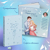 Уникальное подарочное оформление книги Эммы Скотт «Среди тысячи слов»: издание с софттач обложкой с тиснением фольгой, софттач суперобложкой с лаком, тремя цветными вклейками с артами персонажей, сюжетной страницей, ляссе с сердечком и цветной открыткой с автографом автора! Иллюстрация на суперобложке создана художницей eluvianart, внутренние иллюстрации — художницей Кирой Мори.