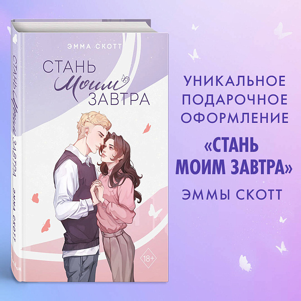 Уникальное подарочное оформление книги Эммы Скотт «Стань моим завтра»: издание с софттач обложкой с тиснением фольгой, софттач суперобложкой с лаком, тремя цветными вклейками с артами персонажей, сюжетной вклейкой, ляссе с сердечком и цветной открыткой с автографом автора! Иллюстрация на суперобложке создана художницей eluvianart, внутренние иллюстрации — художницей Кирой Мори.