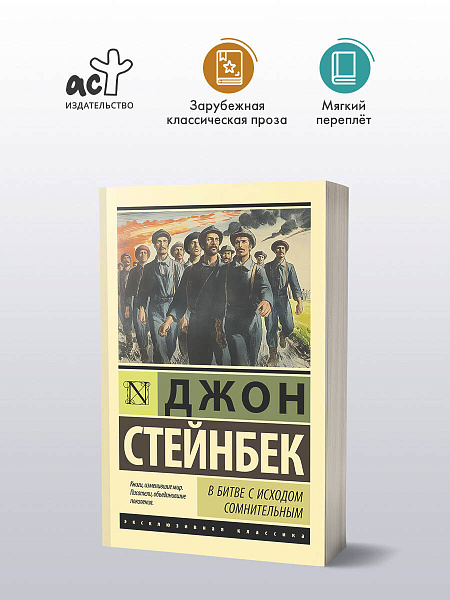 «В битве с исходом сомнительным» можно назвать своеобразной предтечей «Гроздьев гнева» — Стейнбек написал её на пару лет раньше, время действия также пришлось на Великую депрессию, а в центре сюжета также оказались рабочие на калифорнийских плантациях, но не хлопка, а яблок.