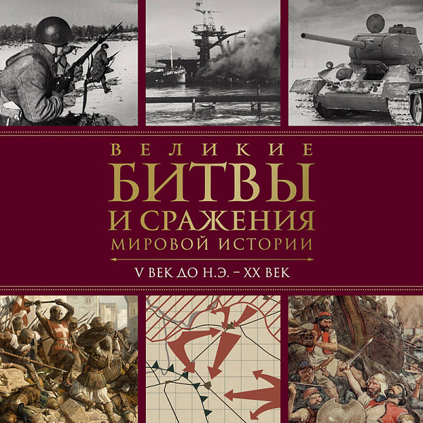 Вы познакомитесь с крупнейшими в мировой истории сражениями, проходившими на суше и на море — с античных времен и до конца ХХ века. В рассказе о каждой битве описан ход боевых действий, даются схемы расположения и движения войск, приводятся интересные цифры и яркие факты о вооружении армий и легендарных военачальниках и полководцах.