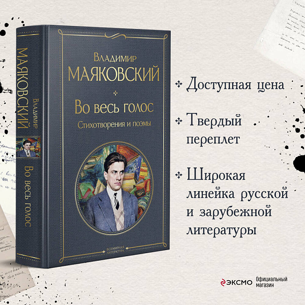 Многогранно талантливый, бунтарски страстный, лирически нежный и всегда удивляющий Владимир Маяковский — одна из титанических фигур русского искусства. Он буквально захватывает внимание читателя «пожаром сердца», азартом, необычностью метафор. Вся его биография отражается в стихах и поэмах, а самые значимые представлены в этом сборнике. Изучая поэзию Маяковского, читатель становится сопричастным открытиям поэта и исторической буре начала XX века, понимая, какие темы, вопросы, проблемы и препятствия возникали на пути поэта. Судьба Маяковского озарена подлинным поэтическим даром и вобрала в себя, кажется, следы всех событий, происходивших сто лет назад – от революции 1905 года до НЭПа.