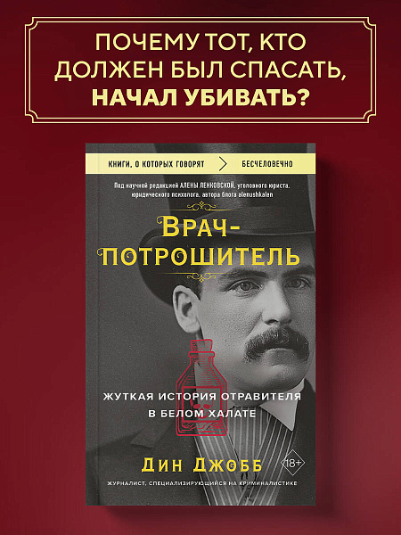 «Невероятно увлекательное расследование преступлений одного из самых жестоких серийных убийц Великобритании. Рассказанная в духе готического романа, эта история никого не оставит равнодушным. Вместе с автором вы побываете в разных странах и самых злачных местах, в зале суда, мрачной тюрьме и на месте казни. И узнаете, как общество со своими предрассудками может породить злодея-отравителя». — АЛЕНА ЛЕНКОВСКАЯ, уголовный юрист, юридический психолог, автор блога alenushkalen