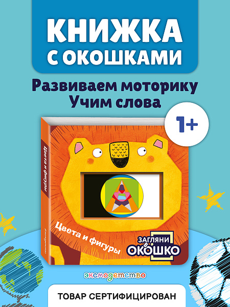 Интерактивная обучающая книжка-игрушка с фигурными окошками для малышей от 1 до 3 лет. Развивает мелкую моторику, внимание и память, расширяет словарный запас и кругозор, знакомит с цветами и фигурами.