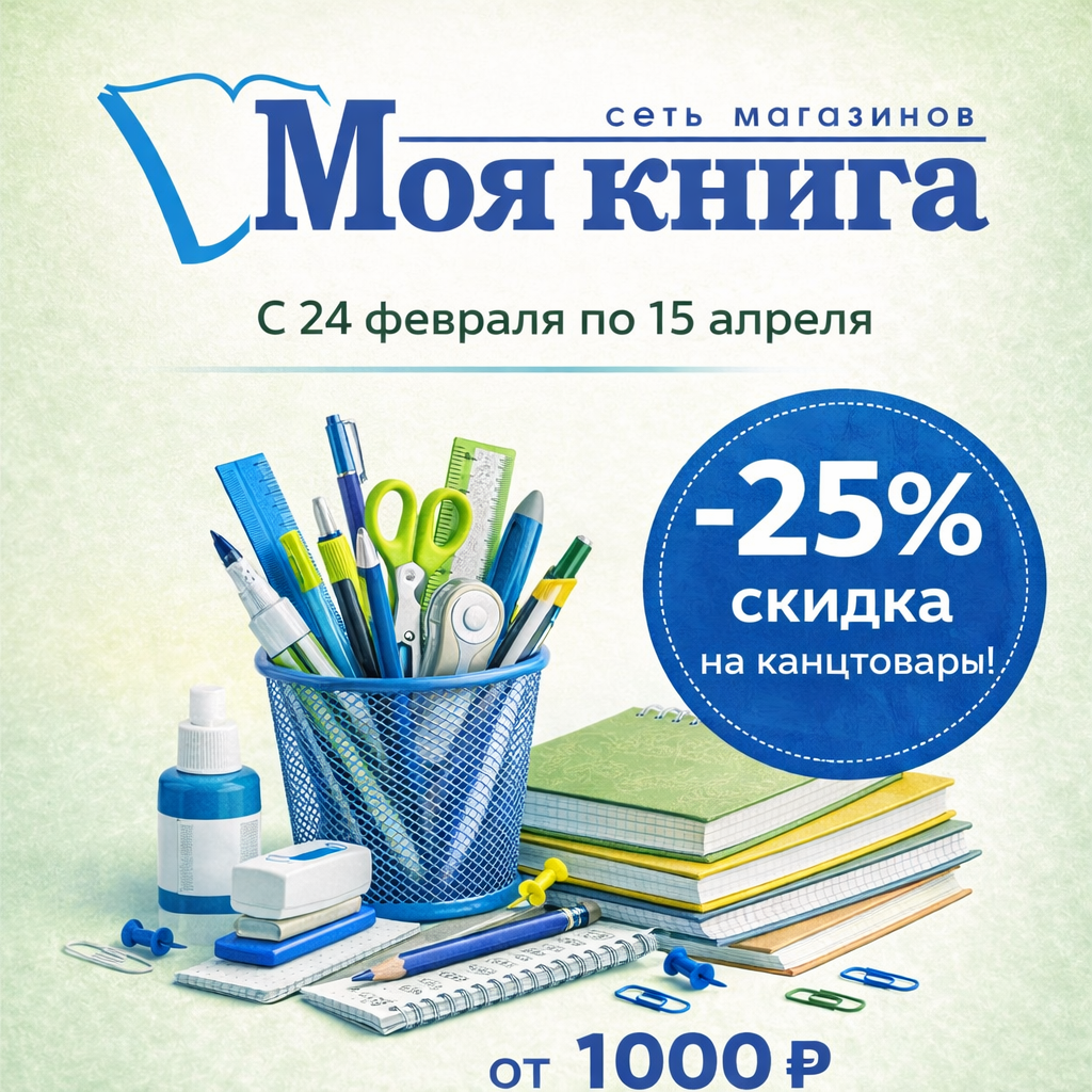 С 24 февраля по 15 апреля 2026 в «Моей книге» —        –25% на канцтовары.