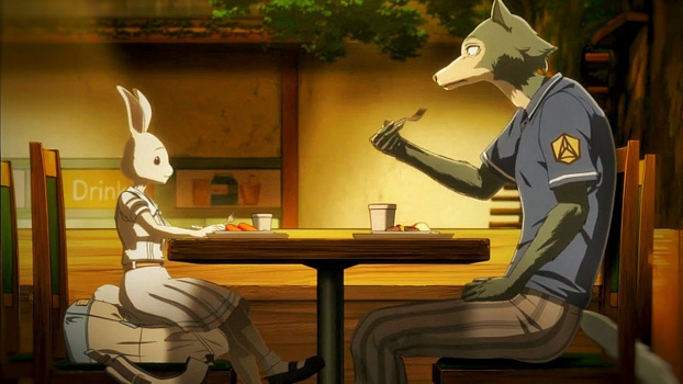 Серый волк Легоши слишком стеснительный для хищника, но случайная встреча с крольчихой Хару и участие в самом важном школьном спектакле вместе с благородным оленем Луи постепенно меняют его привычный образ жизни. А тем временем в стенах школы происходит зверское убийство…